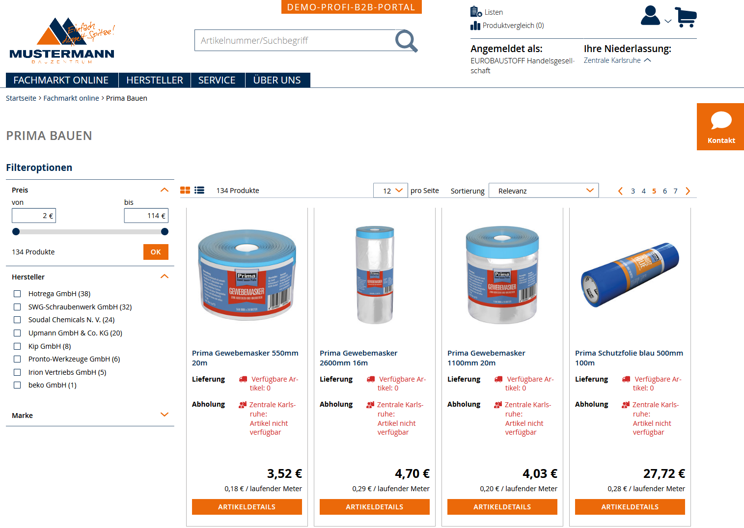 - Gehen Sie mit diesem Artikel zur Kasse und fragen Ihren Ansprechpartner nach Ihrem Kunden- bzw. Angebotspreis und eventueller Mengenstaffeln, so entspricht dies der Ansicht auf der Artikeldetailseite.